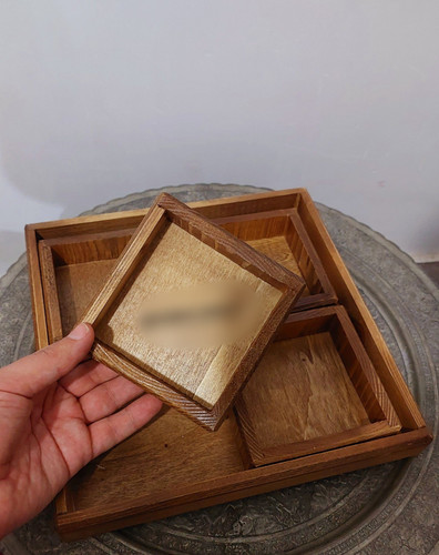 سینی مربع اردو خوری چهارعددی ،چوب طبیعی
