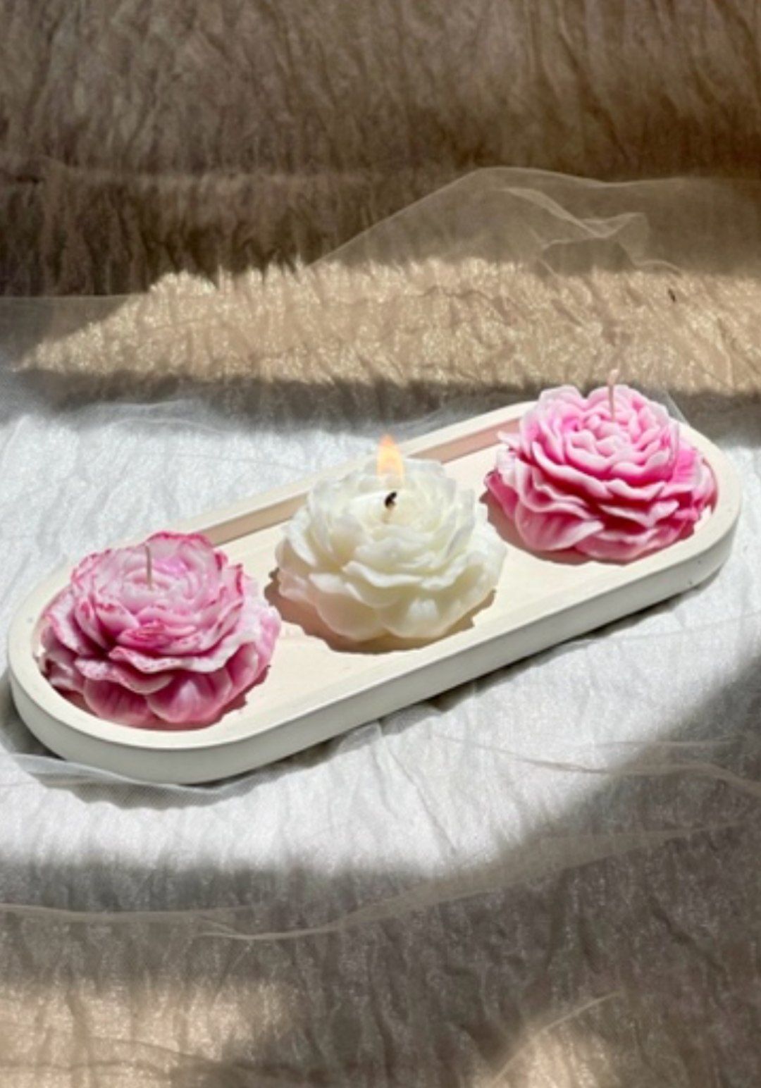 ست ۳ تایی شمع گل آلاله به همراه سینی ۳۹۸