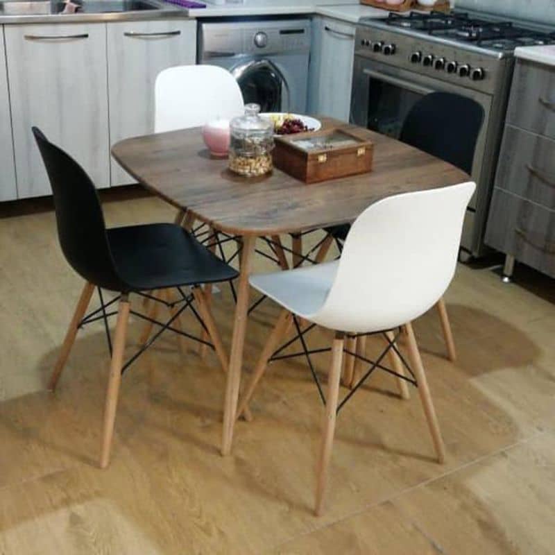 _ست ناهارخوری 4نفره آریا فایبر _صندلی ها از جنس پلی پروپیلن (فایبرگلاس) فوق العاده مقاوم وبا رنگبندی کامل _پایه ها از جنس پلیمر فشرده وجایگزین شدن با پایه های چوبی مرسوم _میزها از جنس mdf های تولید ایران میباشد به سایز 70 سانتی متی _رویه میزها از جنس وکیوم ضد آب میباشد(کلمه ضد خش واقعا دروغه،ولی کیفیت ها قابل قبوله) _رنگبندی های میزها به صورت موجودی انبار:سفید،مشکی،طوسی،گردویی،طرح سنگ مرمری سفید و مشکی