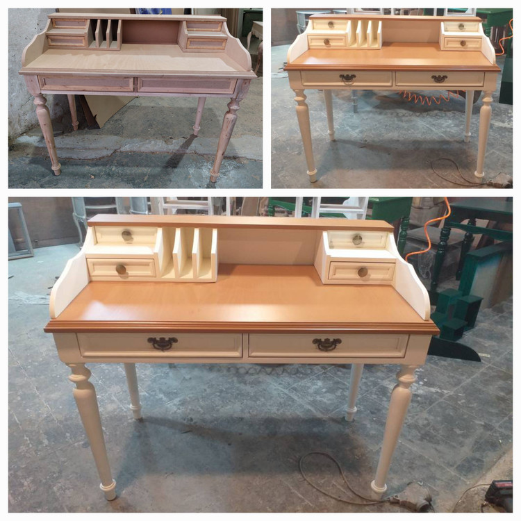 این میز تحریر با دو کشوی کاربردی در زیر صفحه و چهار کشوی کوچک در روی میز فضای مناسبی برای اسناد ، مدارک و لوازم تحریر ایجاد می کند، این میز از چوب راش و روکش چوب راش ساخته شده که بسیار مقاوم و زیباست.