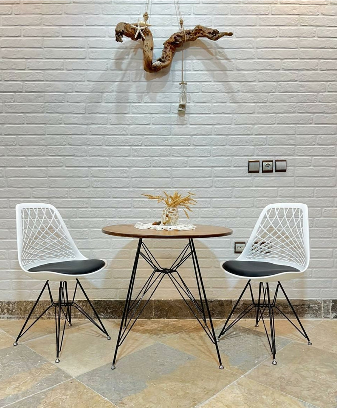 ست ۲ نفره میز و صندلی غذاخوری فایبرگلاس تشک دار کافه رستورانی