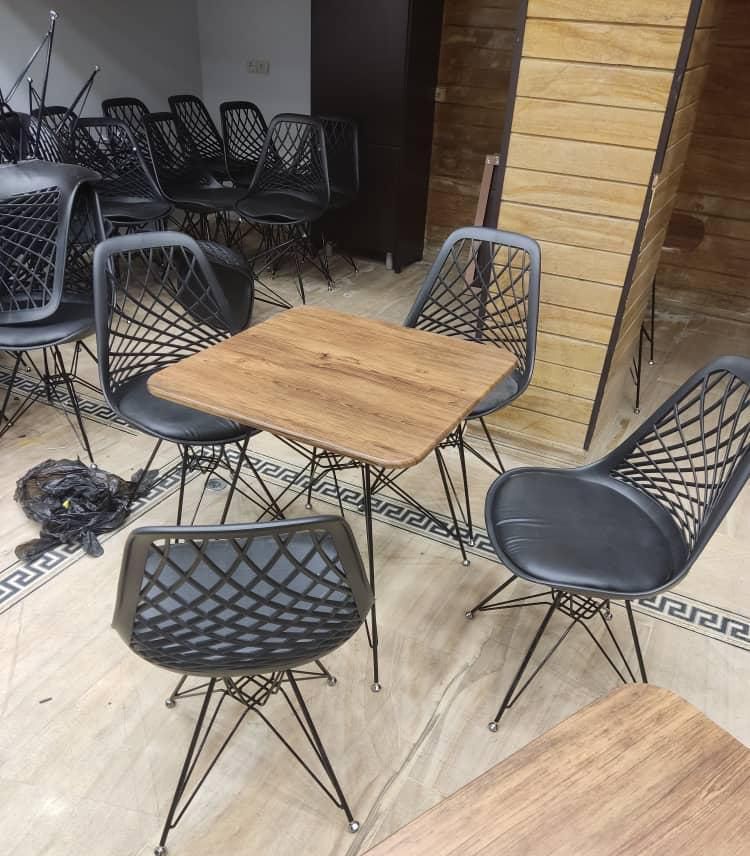 ست ۲ نفره میز و صندلی غذاخوری فایبرگلاس تشک دار کافه رستورانی