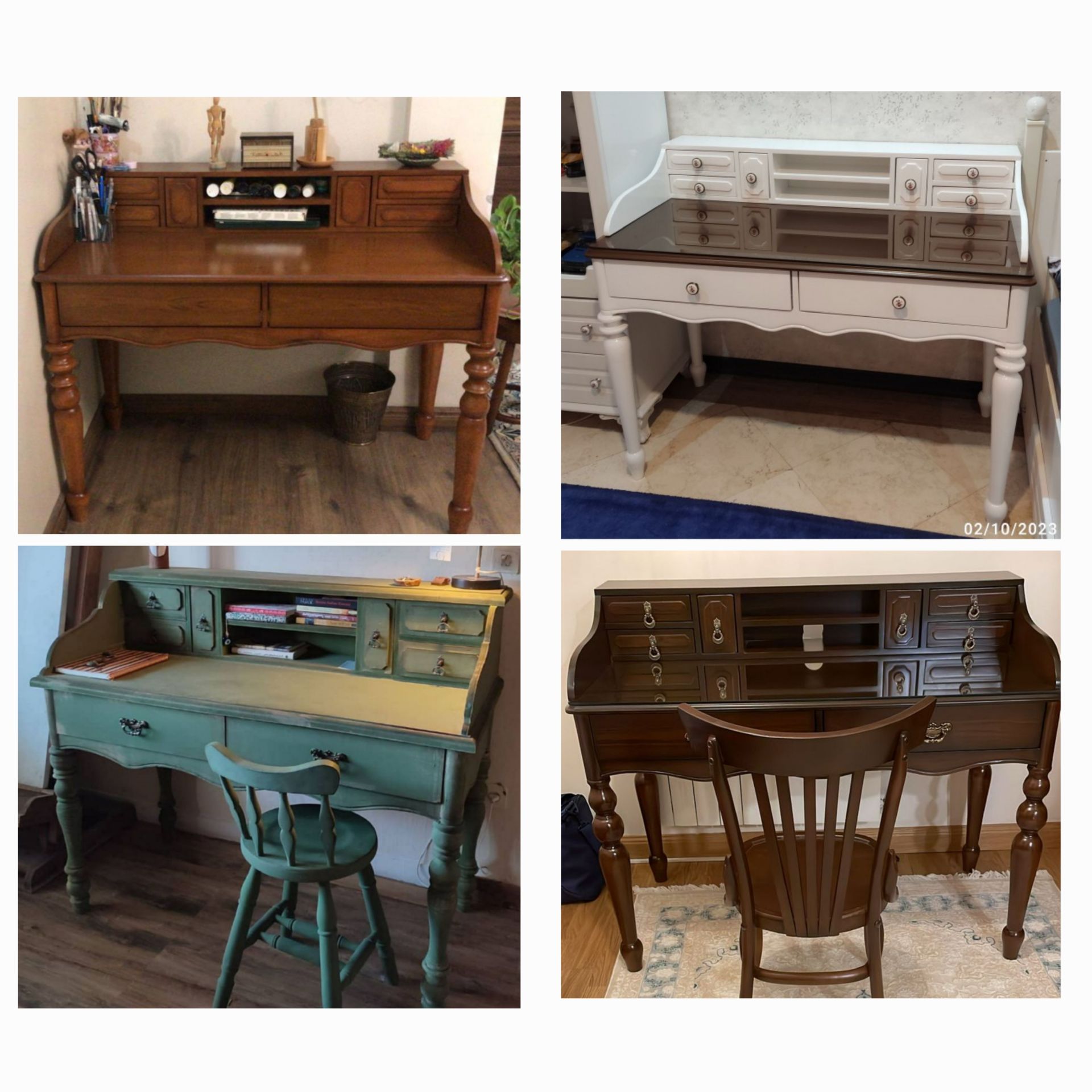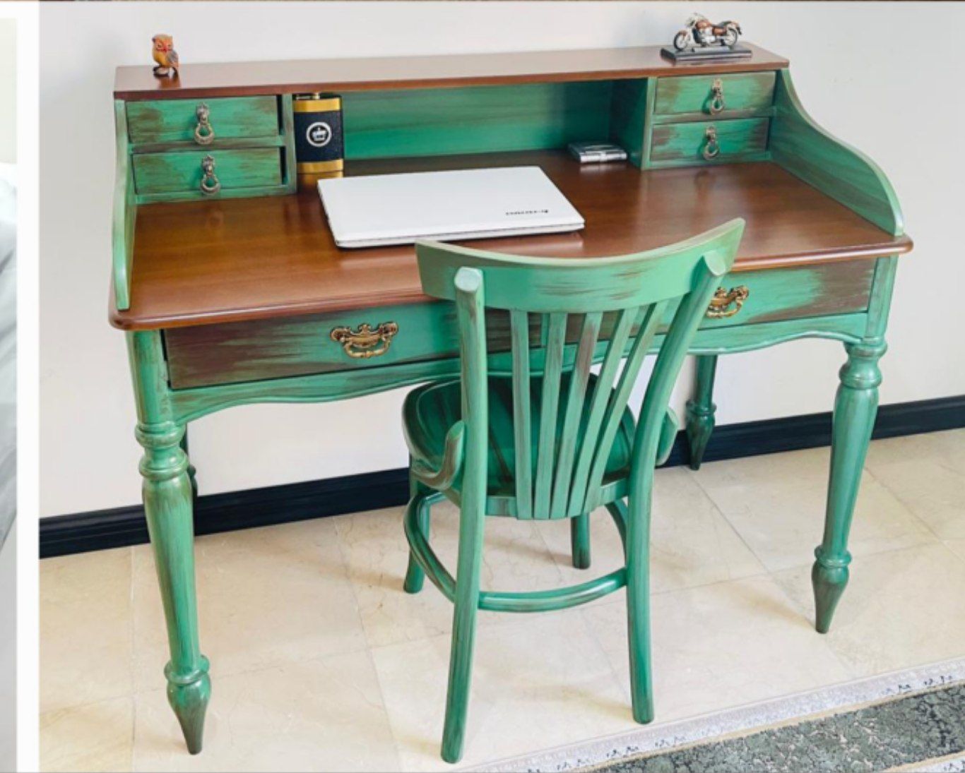 میز تحریر انگلیسی چوب گردو پایه خراطی