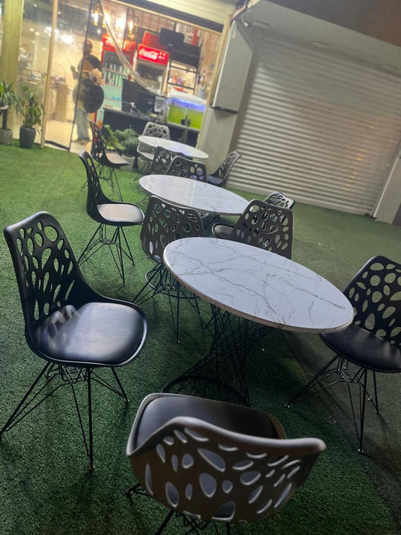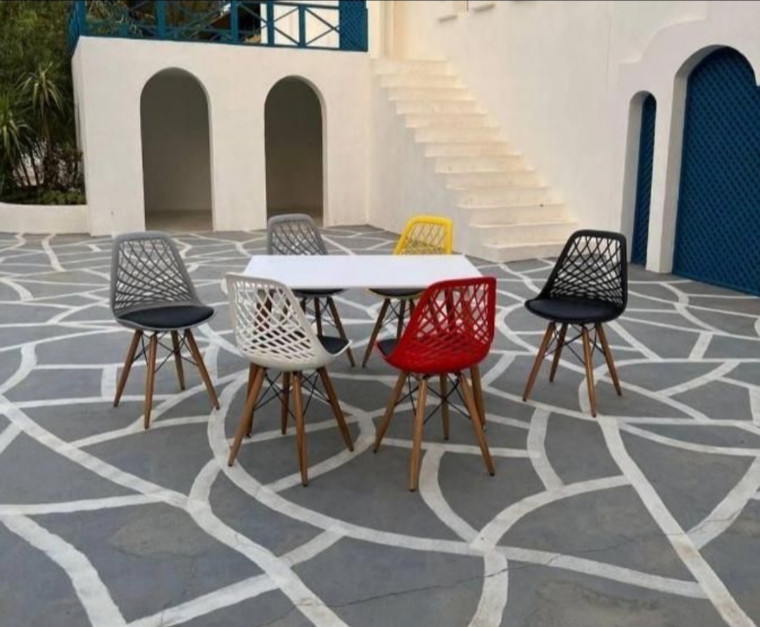 میز و صندلی ناهارخوری شبکه ای پایه فلزی نشیمن پارچه ای2نفره و 4 نفره