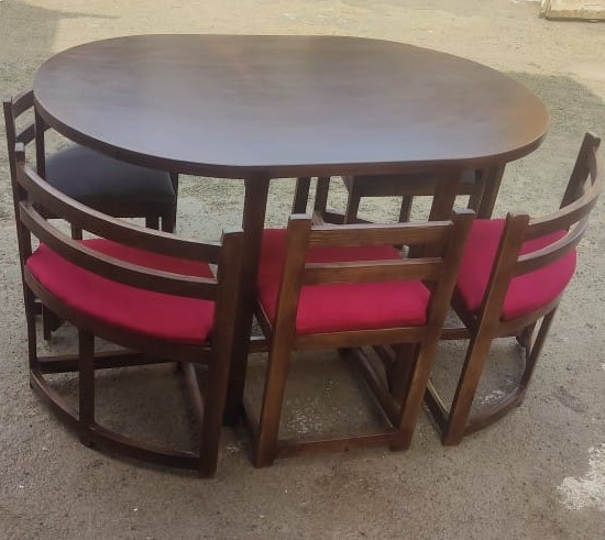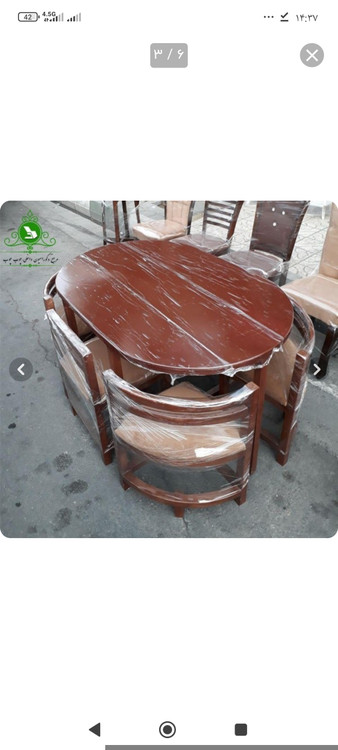 میز ناهارخوری ۶نفره کمجا، بدنه کار چوب روس ، صفحه کار ام دی اف ، ابعاد کار ۱۳۵ در ۹۰