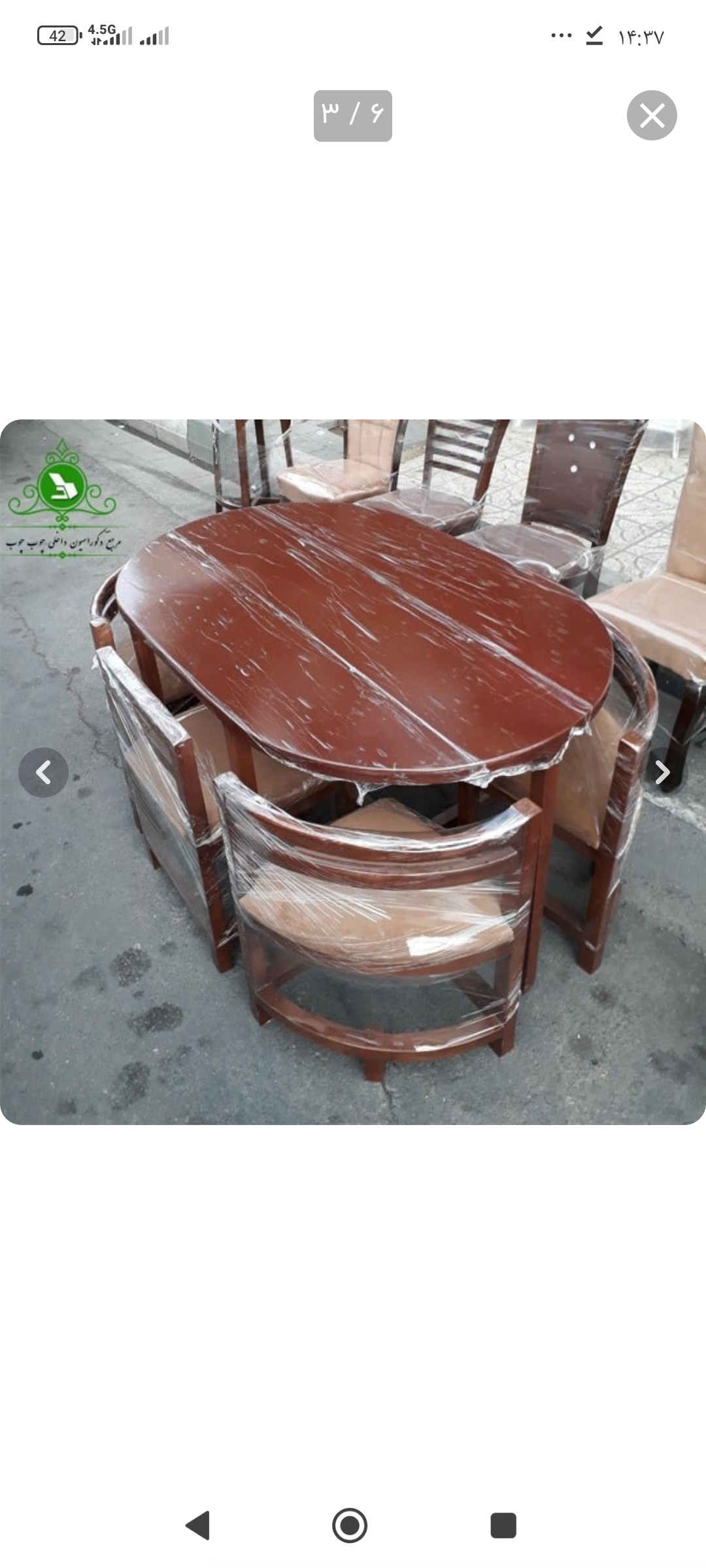 میز ناهارخوری ۶نفره کمجا، بدنه کار چوب روس ، صفحه کار ام دی اف ، ابعاد کار ۱۳۵ در ۹۰